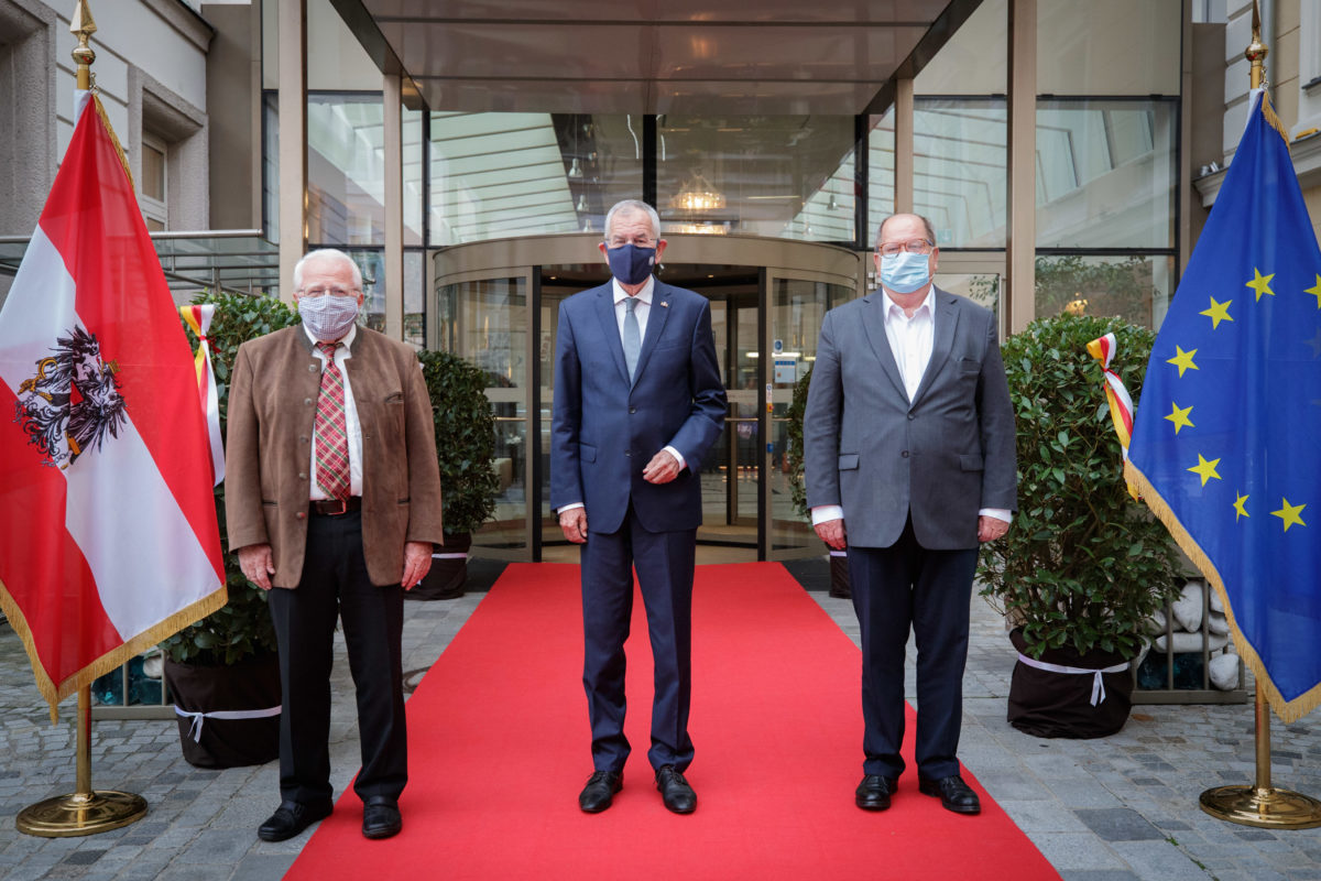 Foto: Fritz Press GmbH Na željo zveznega predsednika je prišlo na predvečer praznovanja do srečanje med Dr. Sturmom, Feldnerjem in Van der Bellenom. Pogovor je tekel o konsenzni skupini, spravi na Koroškem med večino in manjšino. Zvezni predsednik je pohvalil delo konsenzne skupine in zaželel...