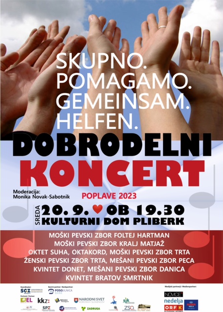 Organizacije koroških Slovenk in Slovencev z združenimi močmi vabimo na dobrodelni koncert v pomoč vsem žrtvam nedavnih neurij in poplav po Koroškem in Sloveniji. V sredo, 20. septembra, ob 19.30 uri bo v Kulturnem domu v Pliberku zapelo deset slovenskih zborov s Koroške, ki so že desetletja povezani...